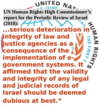 24. HRA-NGO highlighted the serious deterioration in integrity of law and justice agencies as a consequence of the implementation of e-government systems. It affirmed that the validity and integrity of any legal and judicial records of Israel should be deemed dubious at best.