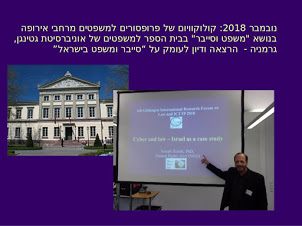 * בנובמבר 2018 הוזמנתי לנהל דיון של 2.5 שעות בבי"ס למשפטים של אוניברסיטת גטינגן בגרמניה (קולוקוויום של פרופסורים למשפטים מרחבי אירופה) בנושא "סייבר ומשפט בישראל" - סקירת הדו"ח לאו"ם על ישראל 2018.