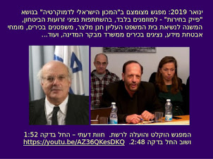 * 01/2019 כנס סגור -"פייק בחירות" - במכון הישראלי לדמוקרטיה עם השופט חנן מלצר,דני דולב, ראש אגף טכנולוגיה בשב"כ בדימוס ( INSS) ומשפטנים בכירים.